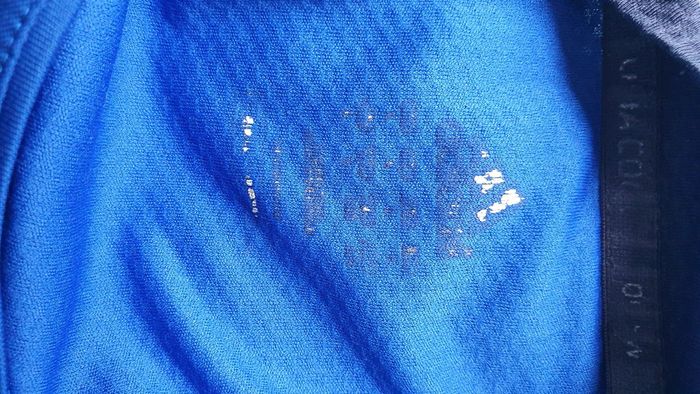Tee-shirt de sport respirant homme taille L Adidas Porté mais reste en état correct. Pas de trou ni de déchirure. Les flocages sont usés.