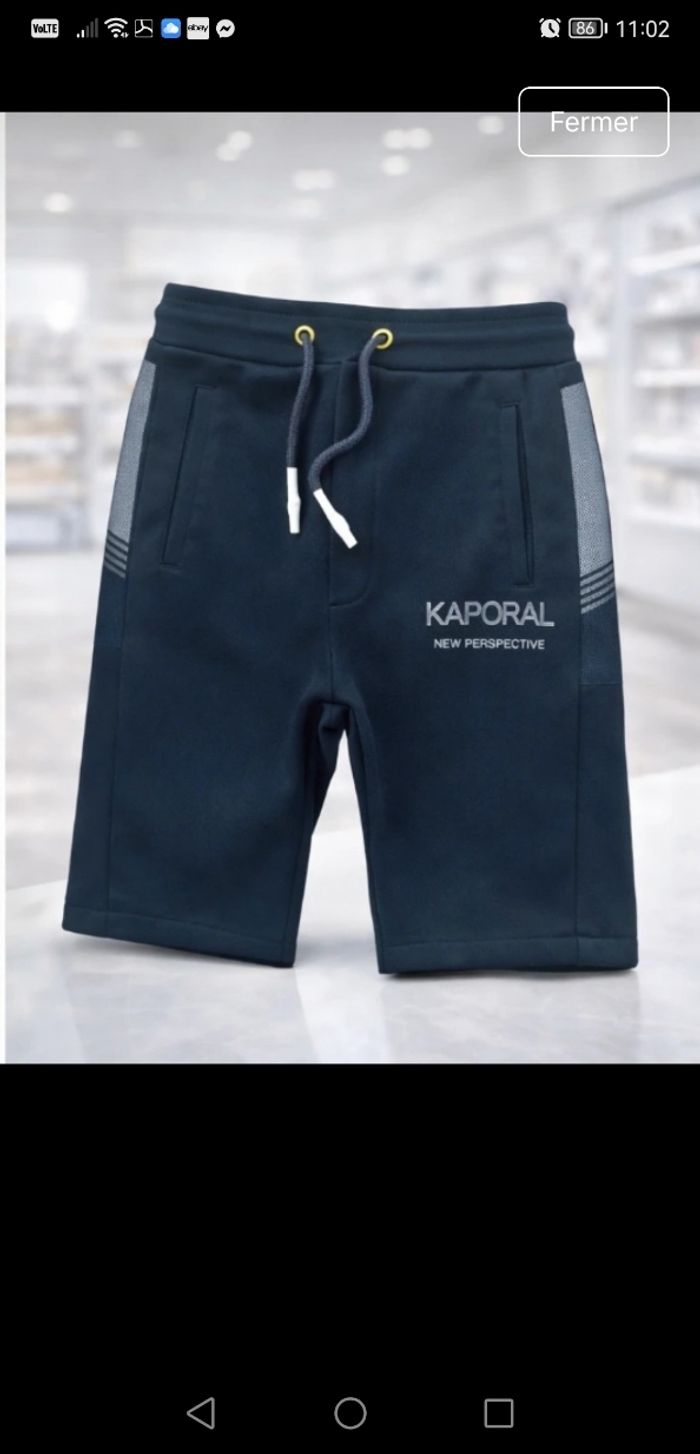 Short Kaporal en excellent état, confortable et tendance, parfait pour le sport comme pour le quotidien. Coupe moderne avec logo KAPORAL visible et finitions soignées. Matière douce et agréable à porter. ✔️ Marque : Kaporal ✔️ Taille : 10 ans ✔️ Couleur : Bleu marine ✔️ État : Très bon état ✔️ Taille élastique avec cordon de serrage ✔️ Logo et étiquette bien visibles Envoie rapide et soigné 📦📦📦