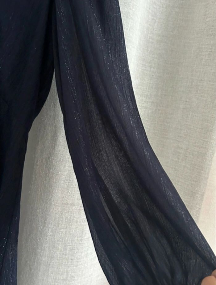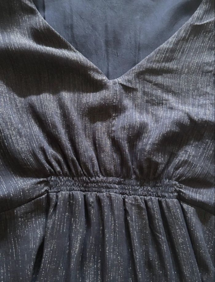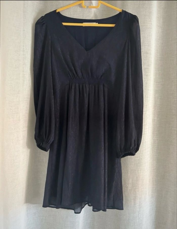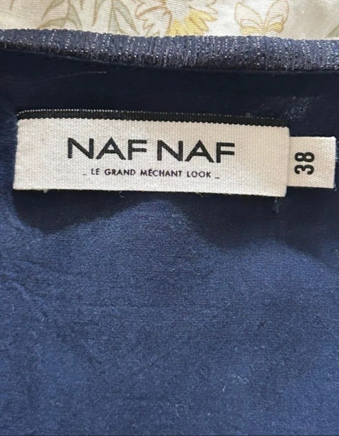 Très belle robe Naf Naf Elle est bleu marine irisée Doublée sauf manche transparente Comme neuve Mesures : aisselle / aisselle 45 cm Aisselle / bas 64 cm