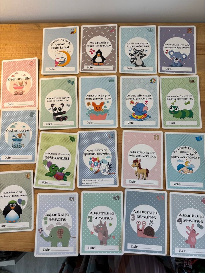 Lot 35 cartes (format cartes postales) Pour marquer les premiers moments de bébé Édition par Little Stars Lot original qui en contenait 50 À prendre en l’état et avec le nombre actuel. Voir photos où vous trouvez toutes les cartes du lot