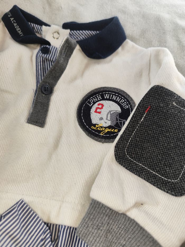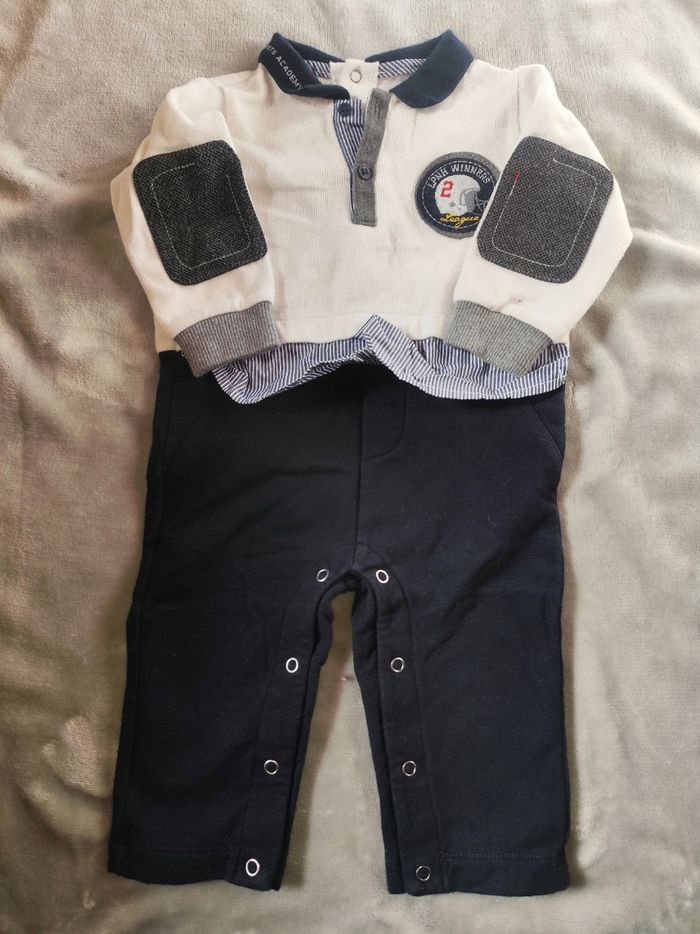 Combinaison faux deux pièces lpnh winners 12 mois En très bon état Vêtement porté mais pas de trou ou autre défaut. Nos vêtements sont stockés dans des boîtes en plastique. Je peux donc les laver avant envoi si vous le souhaitez.