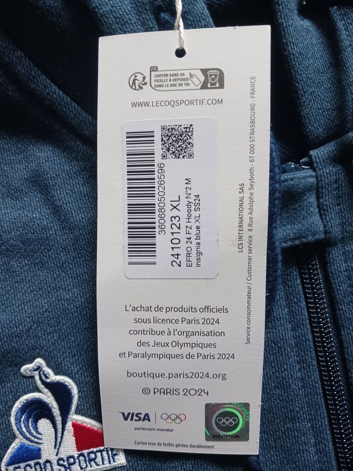 Sweat France bleu marine et blanc à capuche Le Coq Sportif édition Jeux Olympiques Paris 2024 taille XL  - photo numéro 10