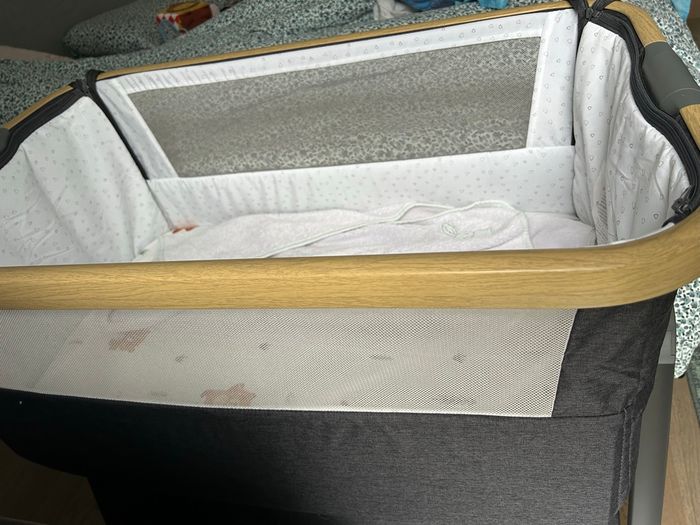 Lit berceau cododo neuf presque jamais servi Se plie et s’emporte dans une housse 4 niveaux de hauteurs Grand rangement en dessous du berceau Matelas compris J’ajoute les deux draps housse aux dimensions spécifiques également