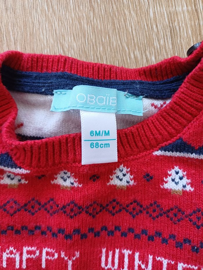 Pull d'hiver rouge avec motif pour bébé garçon, taille 6 mois. Très bon état Marque: Obaïbi