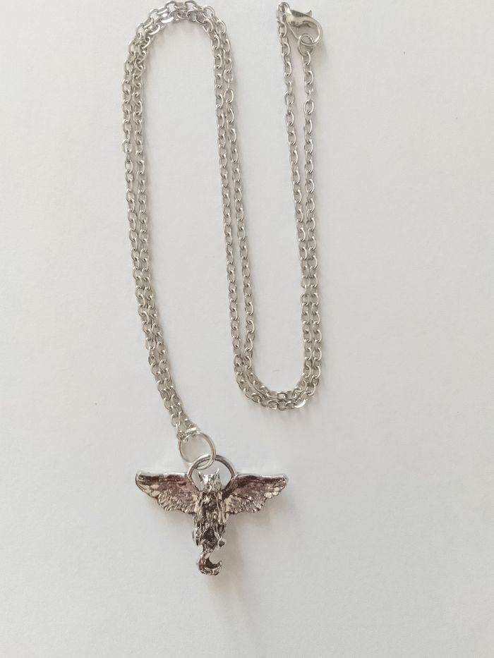 Chaîne + pendentif celtique. Pendentif : loup, ailes. (celtique, protection, spirituel, élégant, idéal cadeau) DESCRIPTIF : Couleur : argenté. Taille chaîne : 50 cm Diamètre : 3 cm L * 2,3 cm H Envoi rapide et soigné.