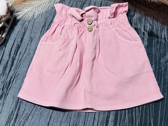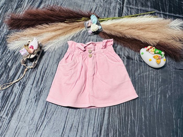 ravissante petite jupe rose poudré, idéale pour un look doux et printanier ! • Style : Coupe trapèze avec taille haute froncée (effet paperbag) et petits boutons décoratifs aspect bois sur le devant. • Détails : Élastique à la taille pour plus de confort et deux petites poches latérales. • Couleur : Rose pastel / vieux rose. • État : Très bon état, peu portée, aucune tache ni accroc. Parfaite avec un petit collant blanc en automne ou jambes nues avec des sandales en été ! ☀️