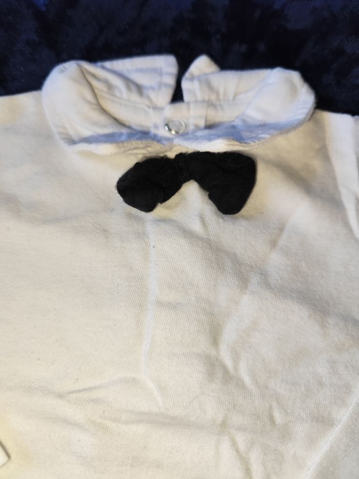 T shirt manches longues, pull fin avec faux noeud papillon mes petits cailloux 9 mois  - photo numéro 3