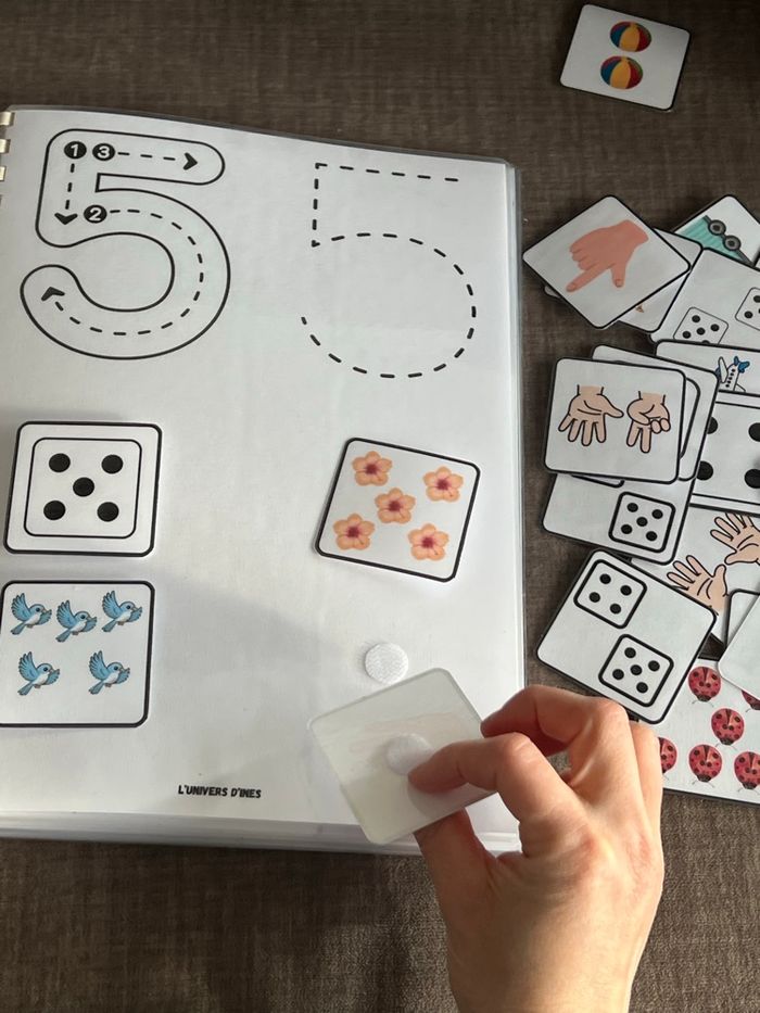 Livret plastifié, je découvre les chiffres de 1-10 Pour chaque chiffre, une page avec le chiffre à tracer, et des cartes à placer ! ✏️ Top pour apprendre à associer un chiffre à une quantité, à dénombrer en comptant les objets sur la carte! 🔢 #apprentissages #ludique #montessori