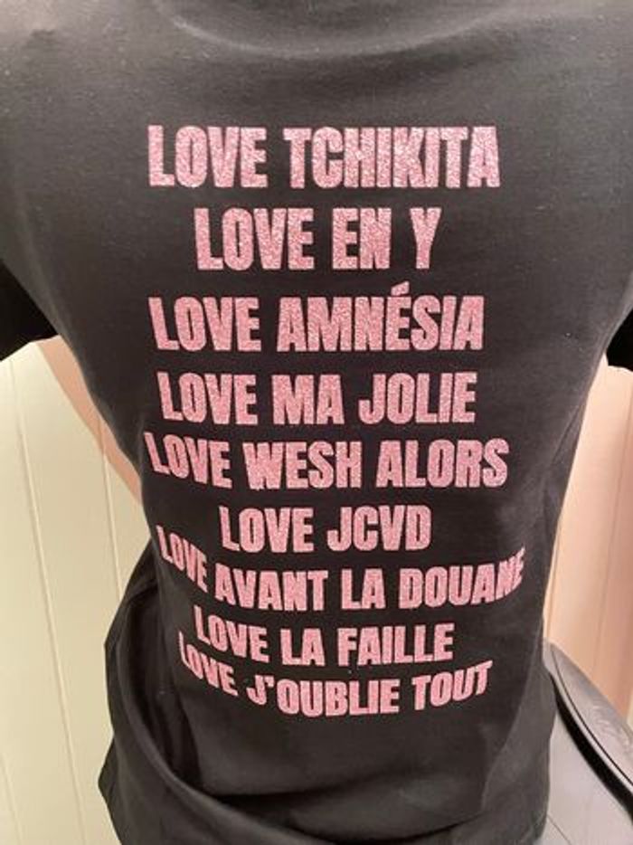 T-shirt noir coupe ajustée, flocage rose paillettes
