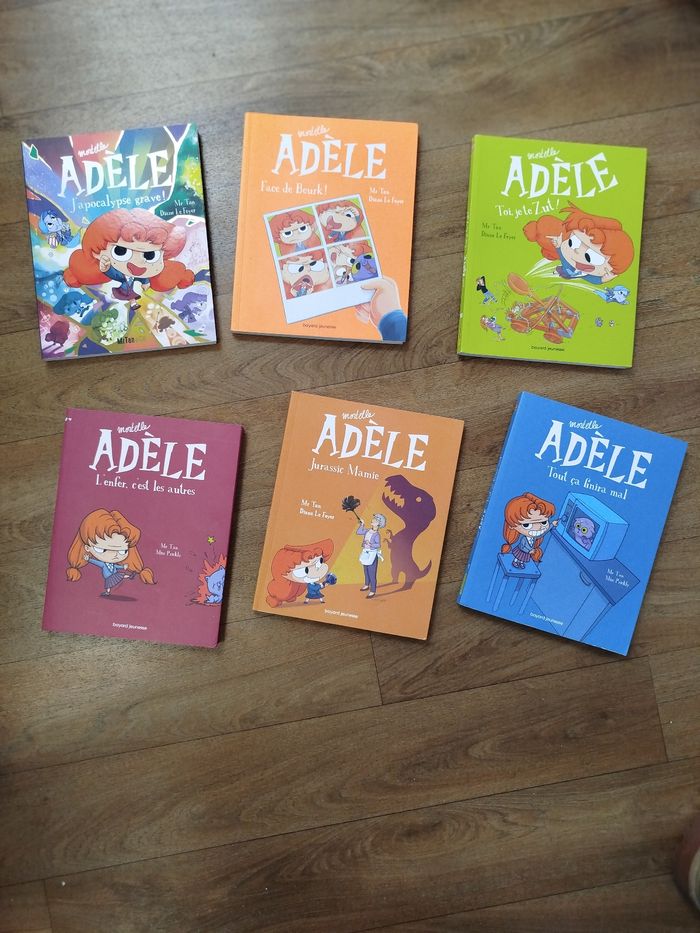 6 livres mortelle Adèle tome 1 tout ça finira mal tome 2 l'enfer c'est les autres tome 16 Jurassic mamie tome 18 toi je te zut tome 19 face de beurk tome 20 apocalypse grave