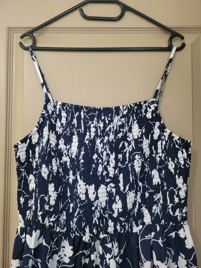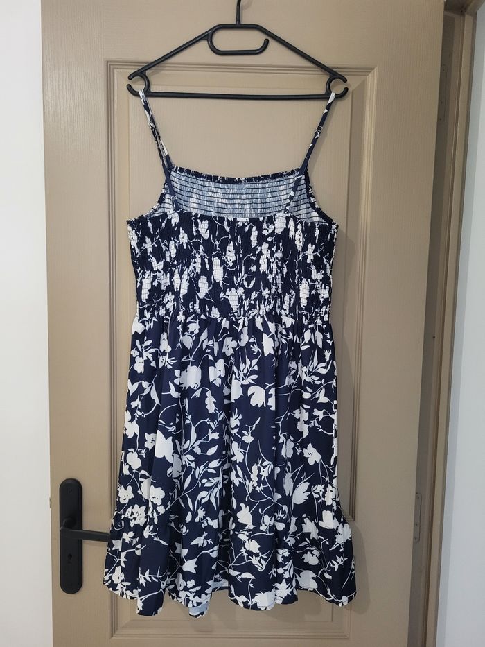 Robe d'été bleu à fleurs blanche Élastique au niveau de la poitrine Taille 42 Jamais porté