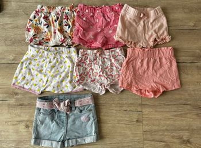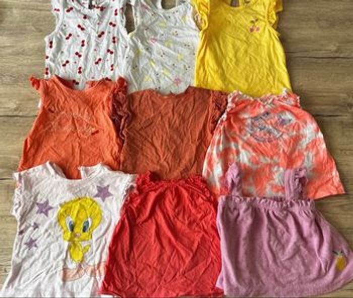 Bonjour, Je vend ce lot de 42 pièces 6 mois qui comprend : - 14 débardeurs / teeshirt - 7 short + 1 ensemble débardeur et short - 1 pyjama en pointelle Bel&Bo - 5 body débardeurs - 4 body manche longues dont 2 petit bateau - 2 body manche courte en gaz de coton - 3 combinaison grenouillère - 1 gilet - 2 robes - 1 haut léger blanc manche longues à col - 1 salopette jean Tout est en excellent état, pas de trou, pas de taches, maison non fumeur. Me demander si besoin d’autres photos.