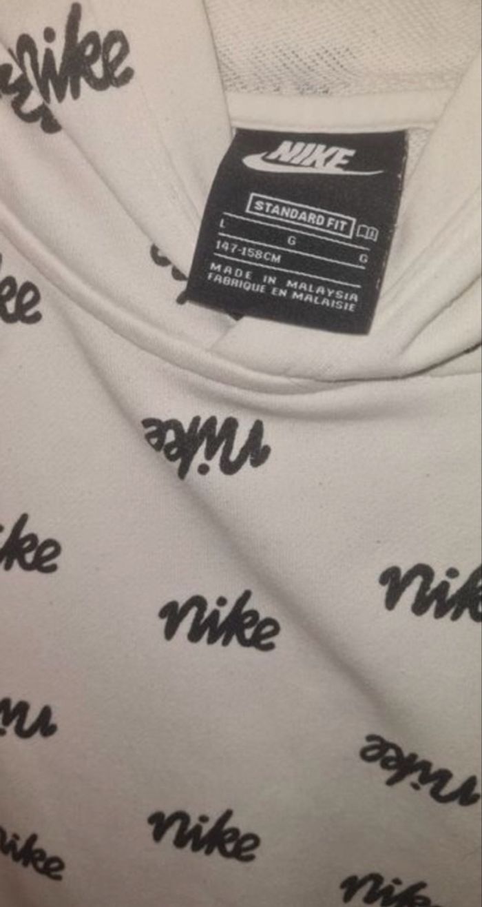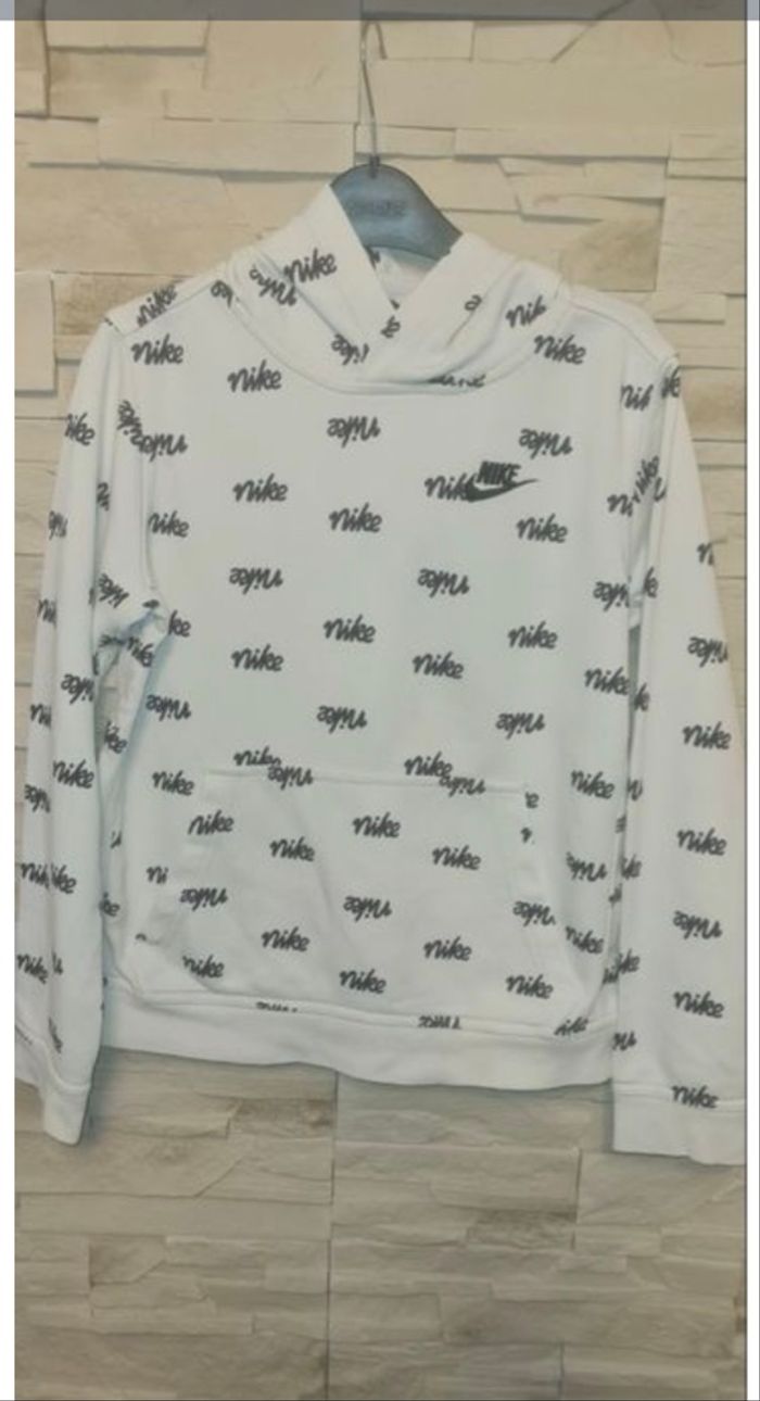 Sweat à capuche blanc Nike porté beaucoup de fois mais en bon état d’où son petit prix. Envoi rapide Taille 147 - 158 cm