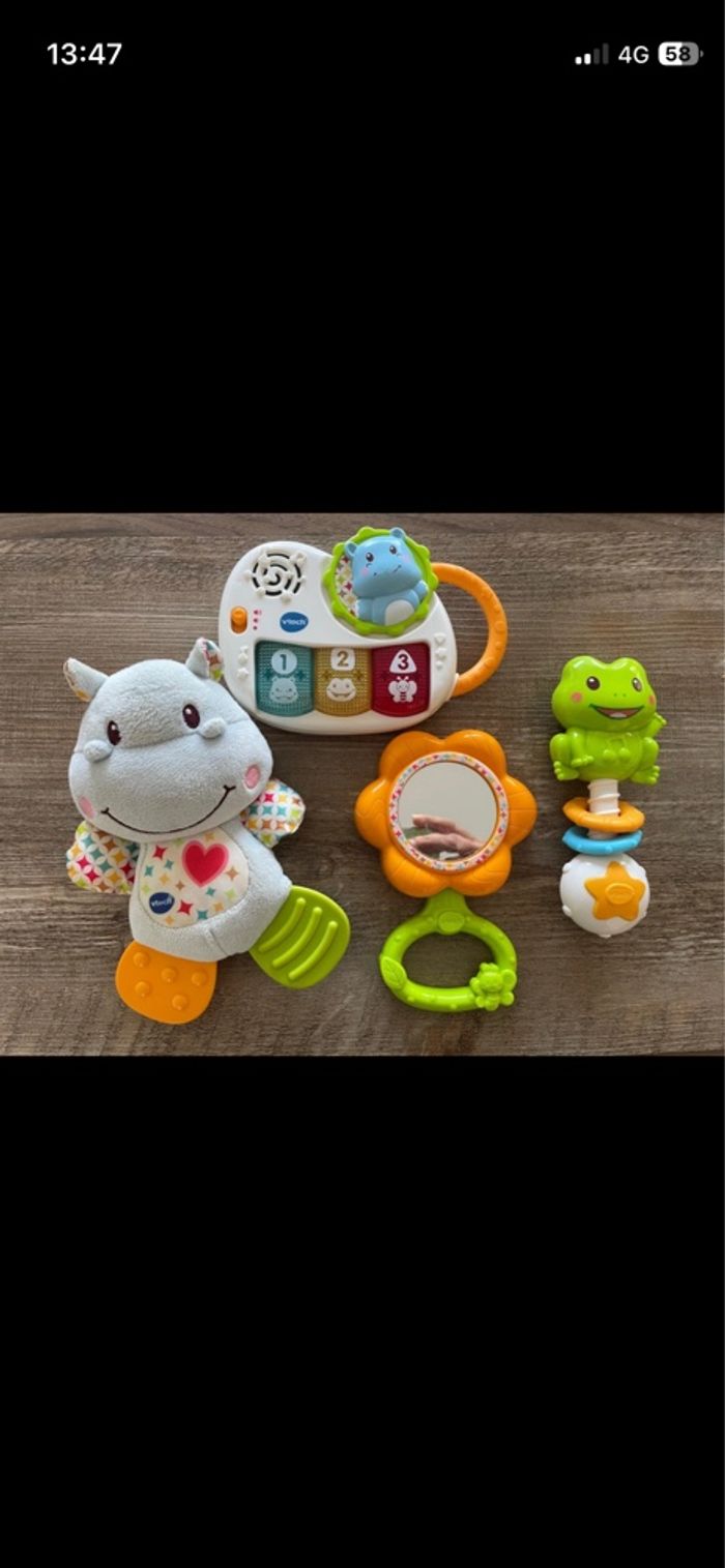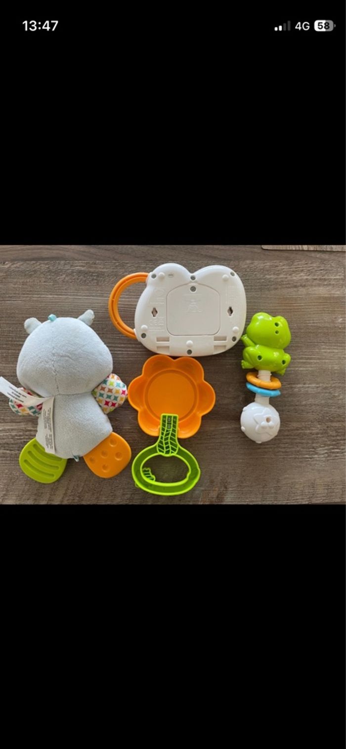 En très bon état peu utilisé. Compose d un hochet, d un miroir, d une peluche qui couine et d un mini clavier.