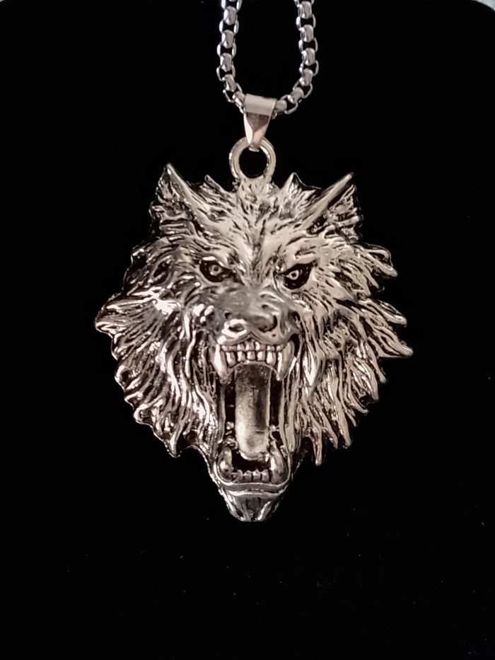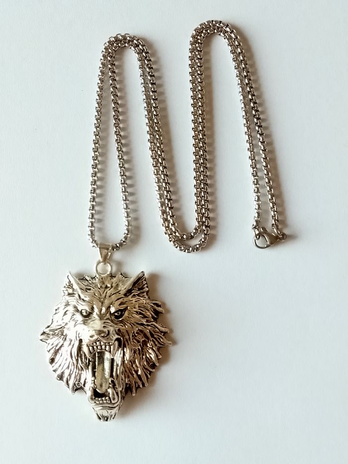 Chaîne + pendentif celtique. Pendentif : tête de loup (celtique, protection, spirituel, idéal cadeau) DESCRIPTIF : Couleur : argenté. Taille chaîne : 60 cm Diamètre pendentif : 4 cm L * 5,7 cm H Envoi rapide et soigné.