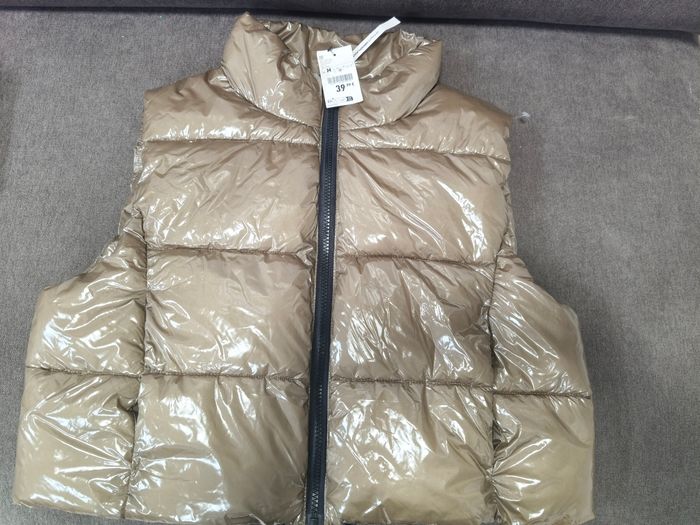 Doudoune sans manches courte femme taille m neuve avec étiquette marron beige brillant