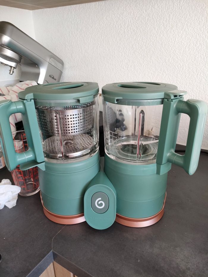 Vends robot cuiseur/mixeur Nutribaby Glass – Babymoov. 🔹 Utilisé quotidiennement depuis avril 2025 🔹 Bon état général 🔹 Parfaitement fonctionnel À noter : ➡️ Présence de traces de calcaire sur la résistance, liées à une utilisation normale (n’altère en rien le fonctionnement). ✔️ Vendu dans sa boîte d’origine ✔️ Utilisé dans un cadre familial ➡️ Vente entre particuliers, article vendu en l’état