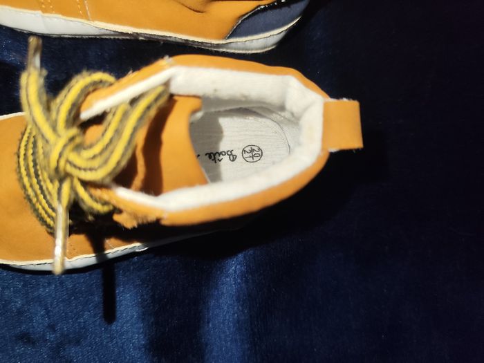Petites baskets semelles souples type chausson taille 20-21 En très bon état Vêtement porté mais pas de trou ou autre défaut. Nos vêtements sont stockés dans des boîtes en plastique. Je peux donc les laver avant envoi si vous le souhaitez.