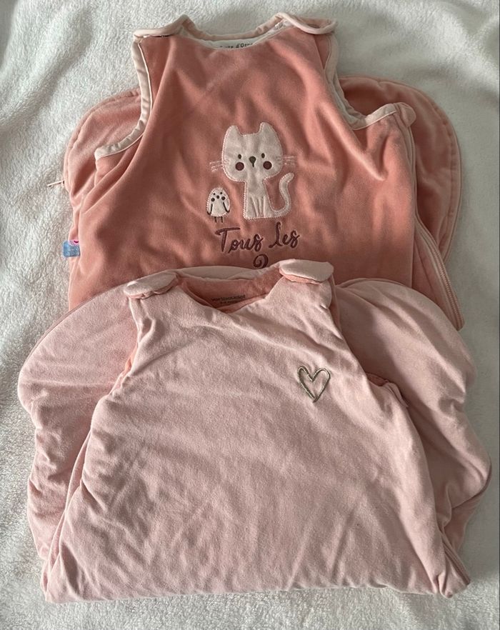 Lot de 2 Gigoteuse hiver rose 0/6 mois 🌼sucre d’orge TOG 3 (avec le chat) 🌼 vertbaudet TOG 2,5 (avec le cœur) Fermeture éclaire sur le côté Bretelle avec pression