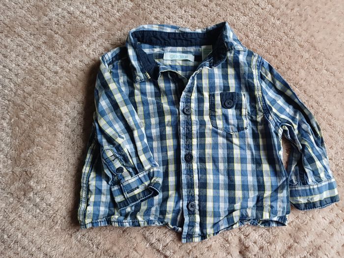 Chemise à carreaux bleue et jaune Obaïbi 6 mois 68 cm
