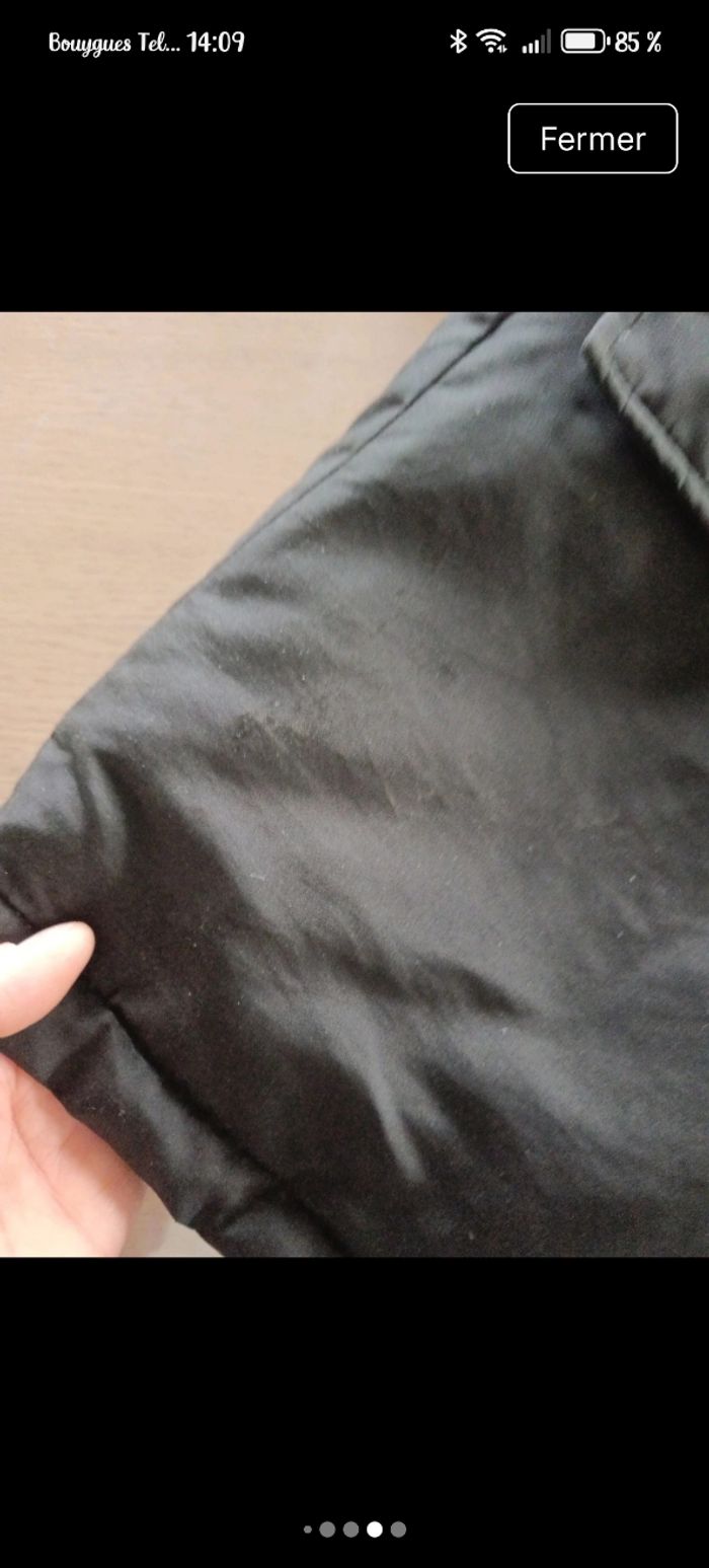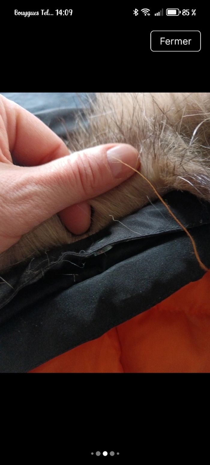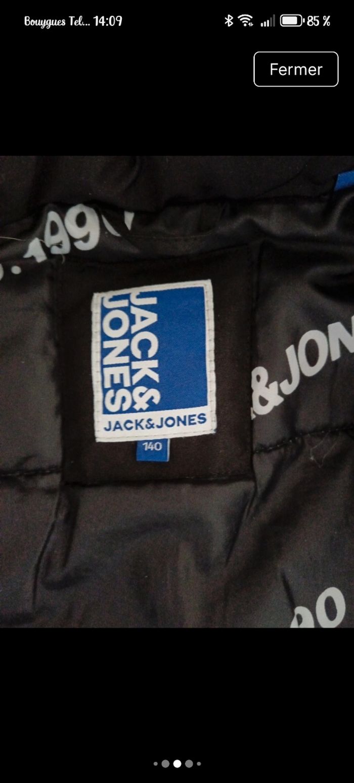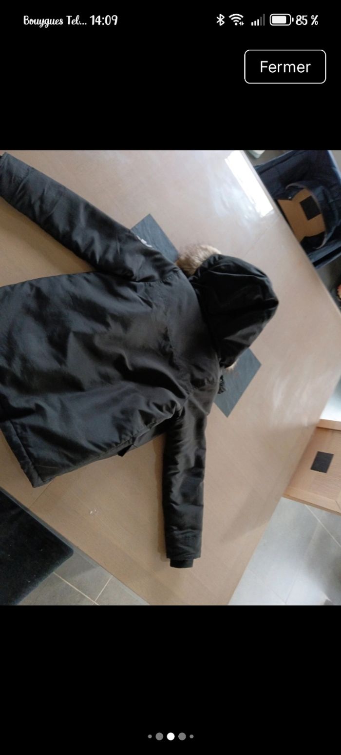 Manteau jack & jones Toutes saisons (pas très rembourré) 10 ans Fermeture éclaire et pressions Multi poches avec pressions Les Poils de la capuche sont amovibles par pressions également Et la capuche se retire par zip Égratignures peu visibles sur la dernière photo