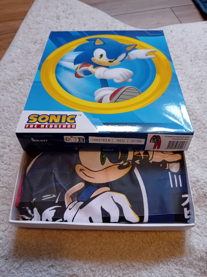 Pyjama 2pieces + boite sonic Sonic Haut + bas Taille 3ans 100% coton Neuf avec étiquette
