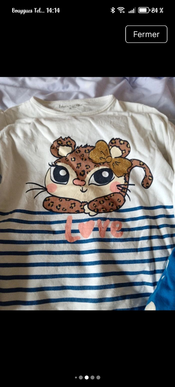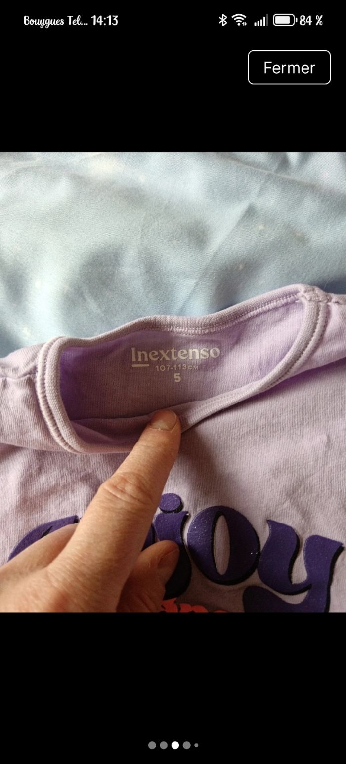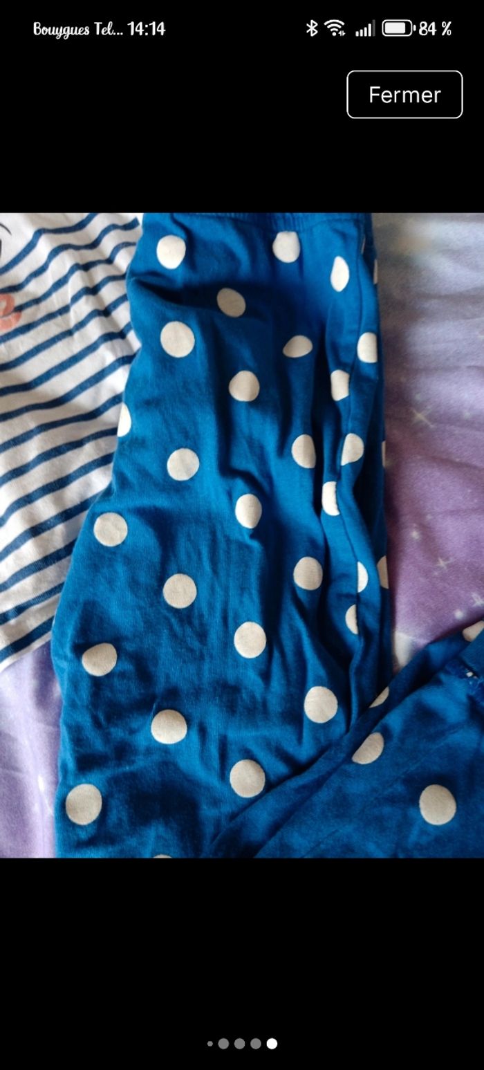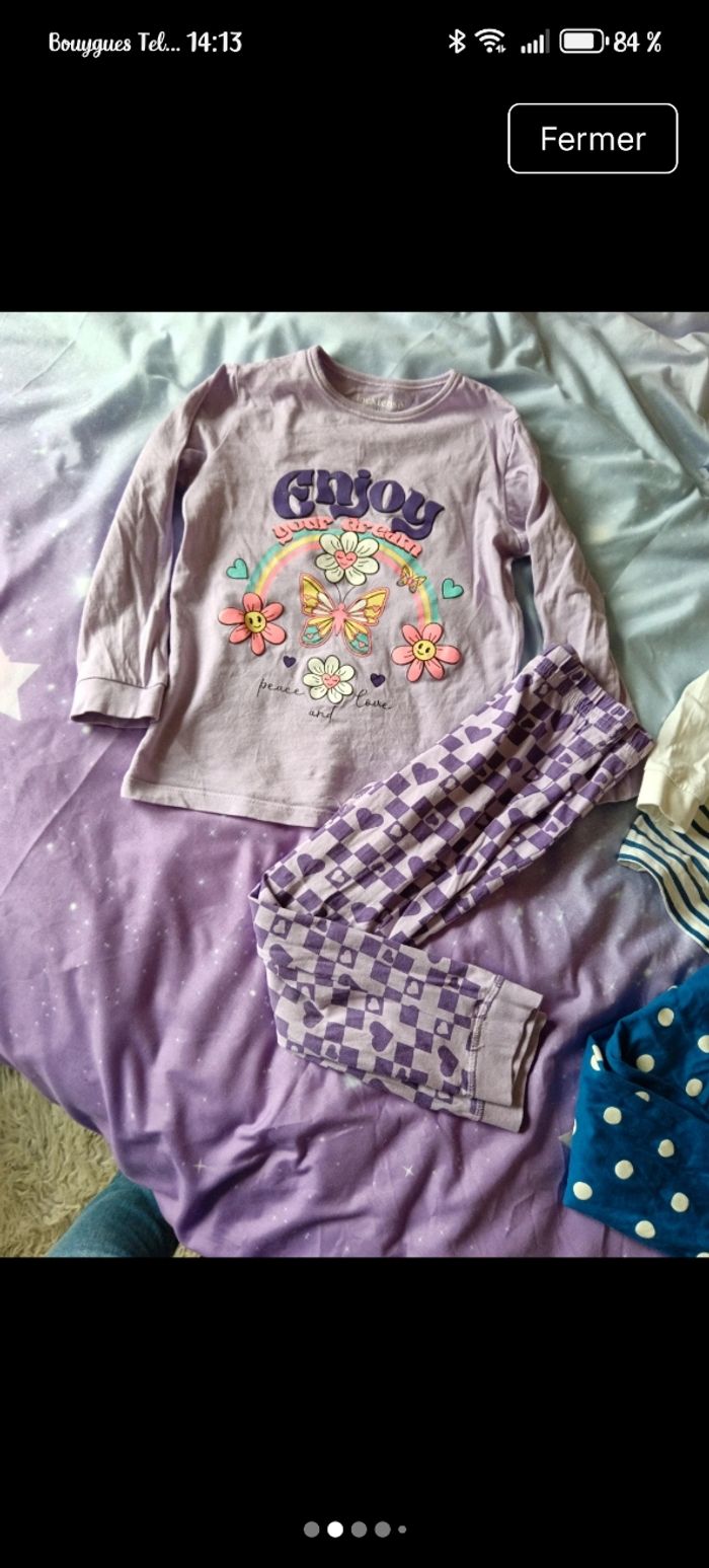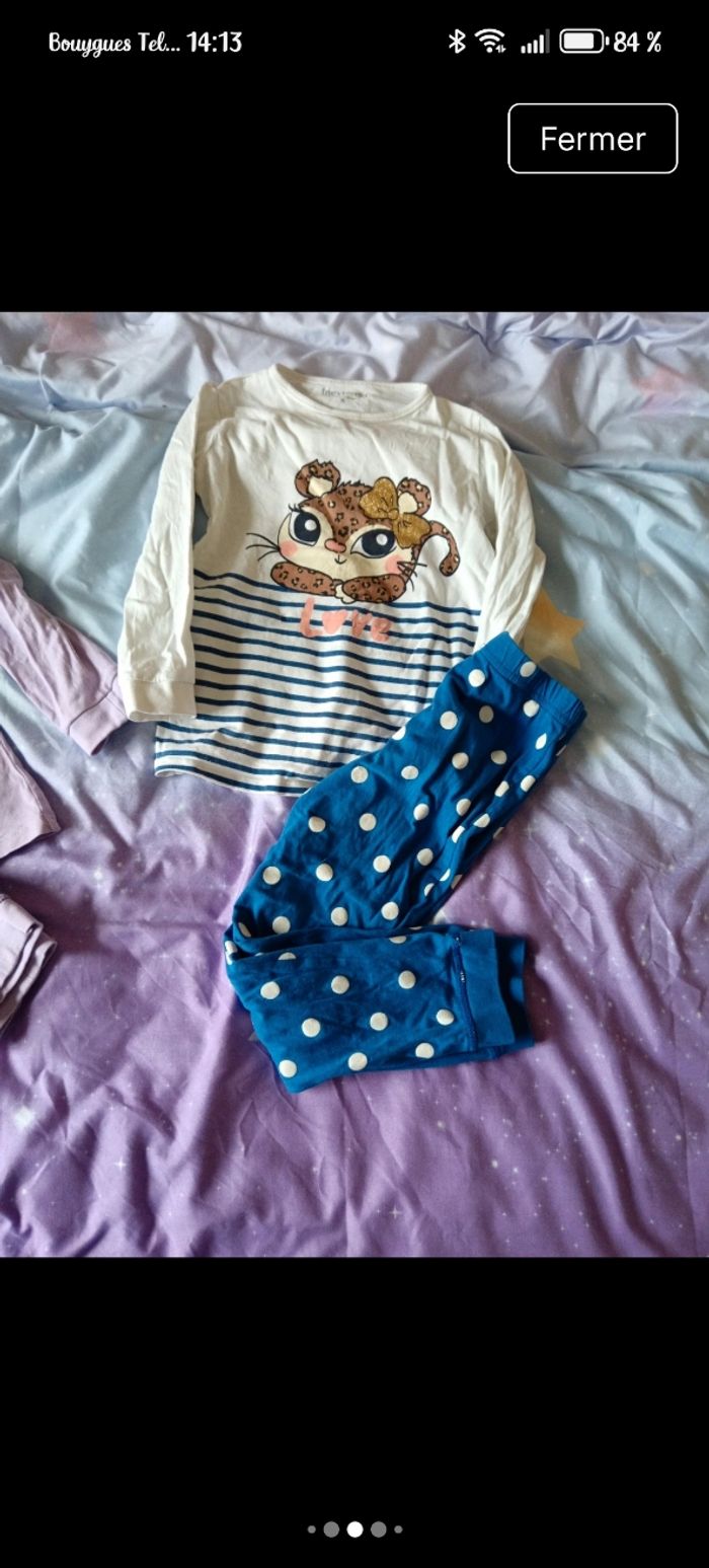 Lot de 2 pyjamas cotons, 5 ans In extenso Le pantalon violet a un problème de couture mais pas troué, acheté comme ça