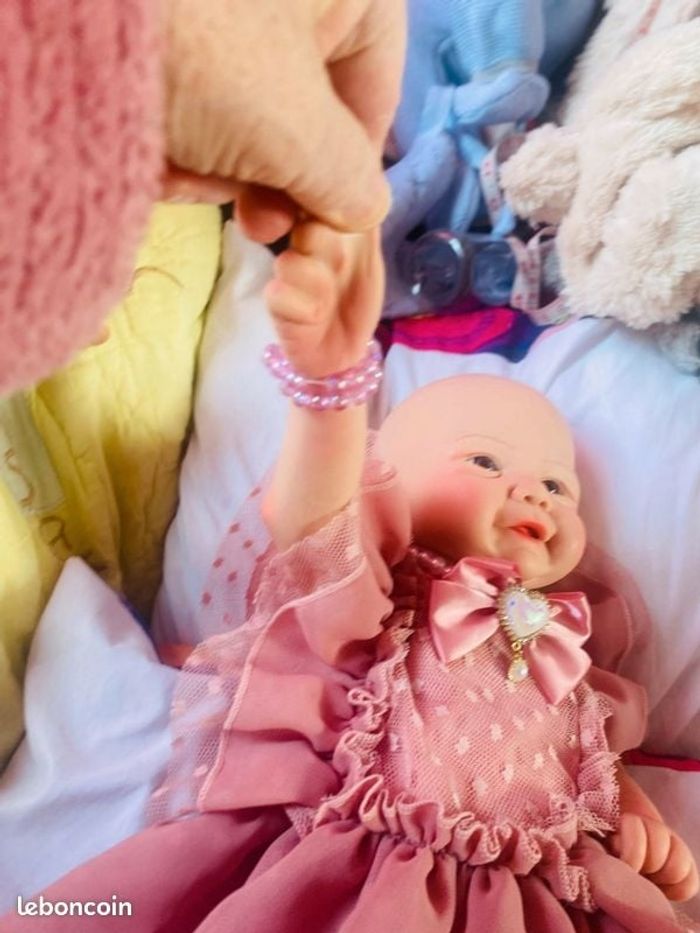 ​Je vends ce magnifique bébé reborn entièrement en silicone, offrant un réalisme et une souplesse exceptionnels. Contrairement aux modèles avec un corps en tissu, ce bébé est entièrement modelé, ce qui permet de l'habiller facilement et même de lui donner un bain (avec précaution). ​Caractéristiques principales : ​Matière : 100% silicone souple, très doux au toucher. ​Réalisme : Détails anatomiques soignés, peau peinte avec soin. ​Accessoires : Vendu avec sa tétine aimantée à motif cœur et son biberon rose (voir photos). ​État : Excellent état, parfaitement entretenu. ​Origine : Maison non-fumeur.