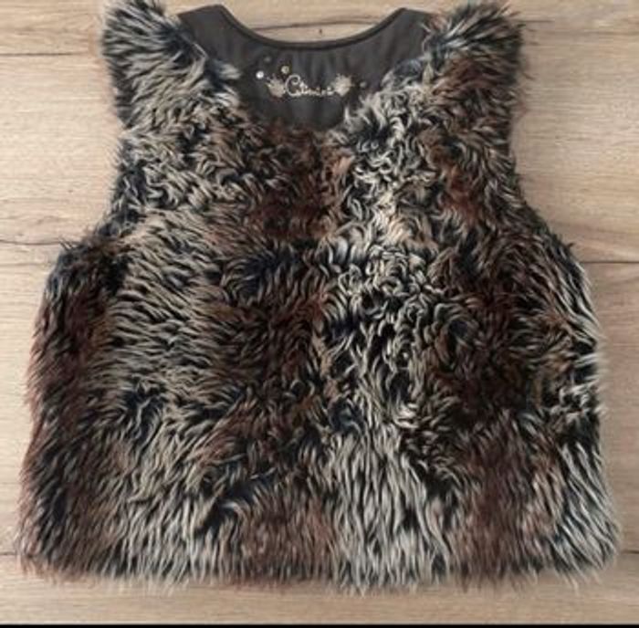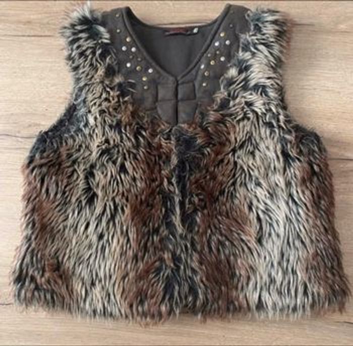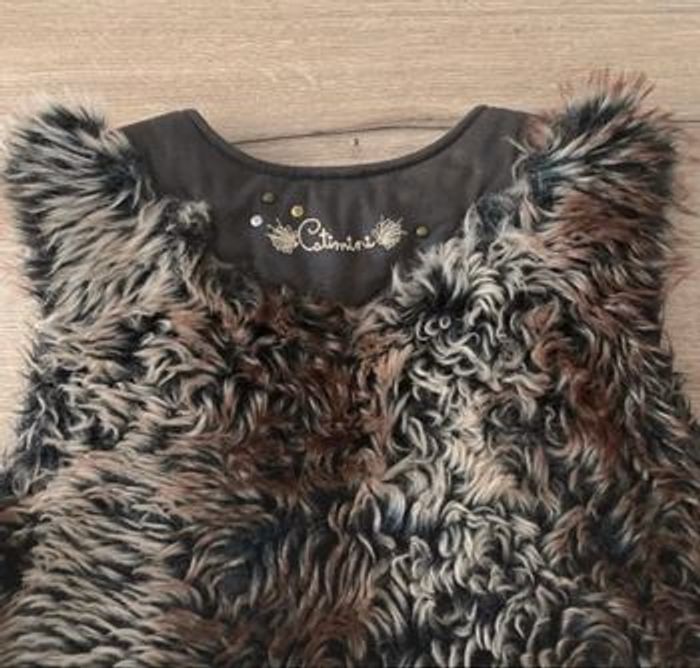 Très jolie veste sans manches Catimini taille 8 ans. Effet fausse fourrure multicolore (tons marron, beige, noir) avec jolis détails cloutés sur le haut. ✨ Intérieur doublé ✨ Fermeture discrète à l’avant ✨ Chaude et confortable En très bon état, peu portée. 📏 Taille : 8 ans 🏷️ Marque : Catimini 📦 Envoi rapide et soigné