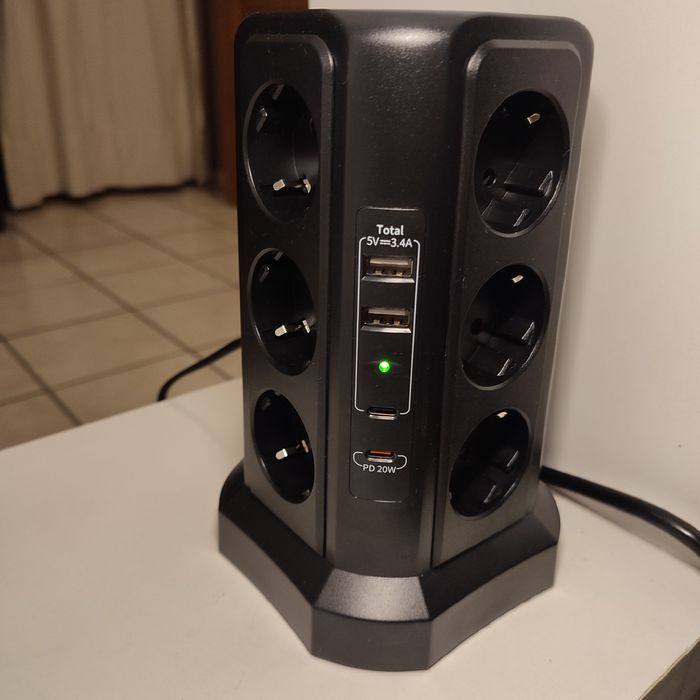 Bonjour je vend une Multiprise 12 prises (4000W16A) veilleuse tactile sur le dessus 3 niveau d'intensiter 12 prise de courrant 2 prise usb 2 prise usb type c Protection de tension, bouton on-off Cable 2 mètres