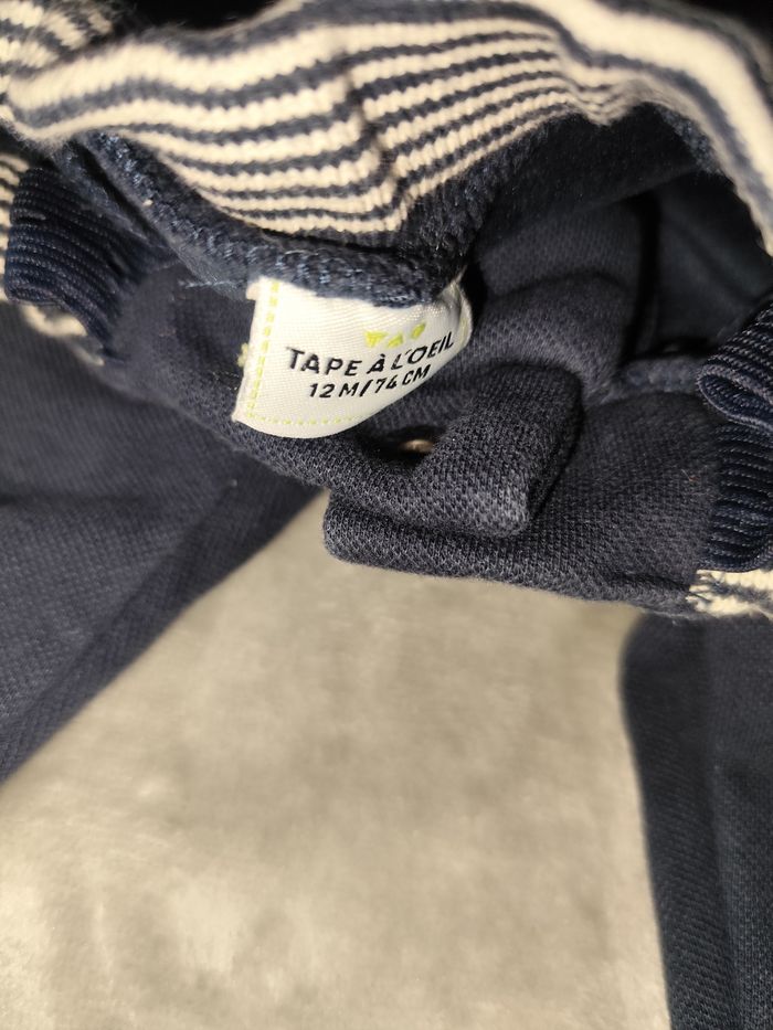 Pantalon survêtement tape à l'oeil 12 mois En bon état Vêtement porté mais pas de trou ou autre défaut. Nos vêtements sont stockés dans des boîtes en plastique. Je peux donc les laver avant envoi si vous le souhaitez.