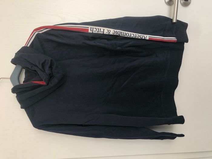 Joli pull homme manches longues et capuche Liseré rouge et blanc sur l'épaule et les manches. Marque Abercrombie&Fitch Taille M Aisselles: environ 54 cm