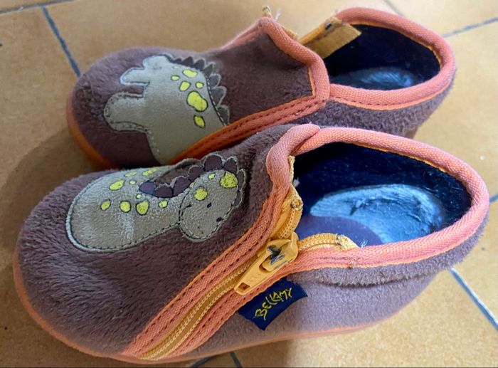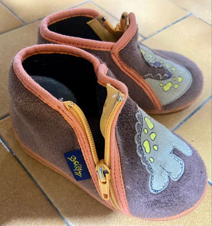 Chaussons orange vert marron dinosaure 22  bichou - photo numéro 1