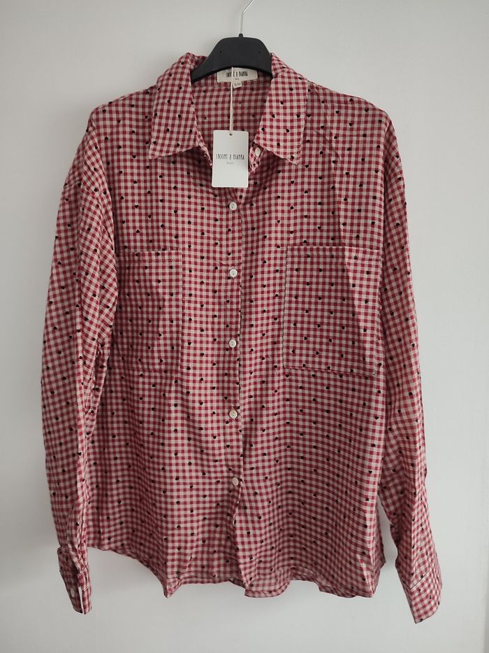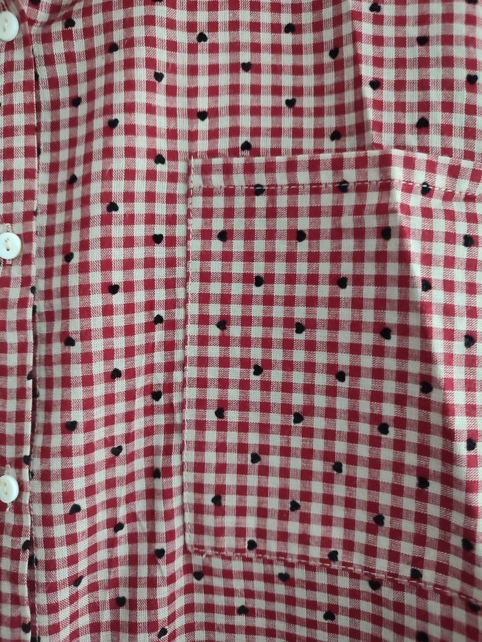 Chemise manches longues taille S/M À carreaux avec petits coeurs Taille grand .aisselle à aisselle 52 cm Longueur 63 cm 100 % coton