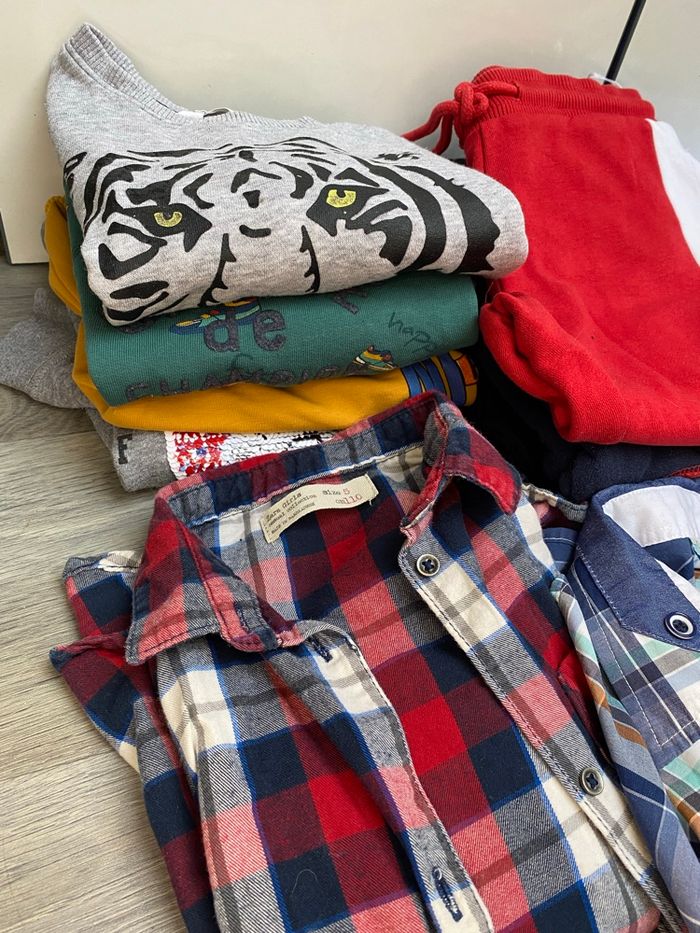 Très bon état 4 pulls 1 survêtement (ensemble avec 2 pantalons) 2 chemises 1 short 1 pyjama Etc...