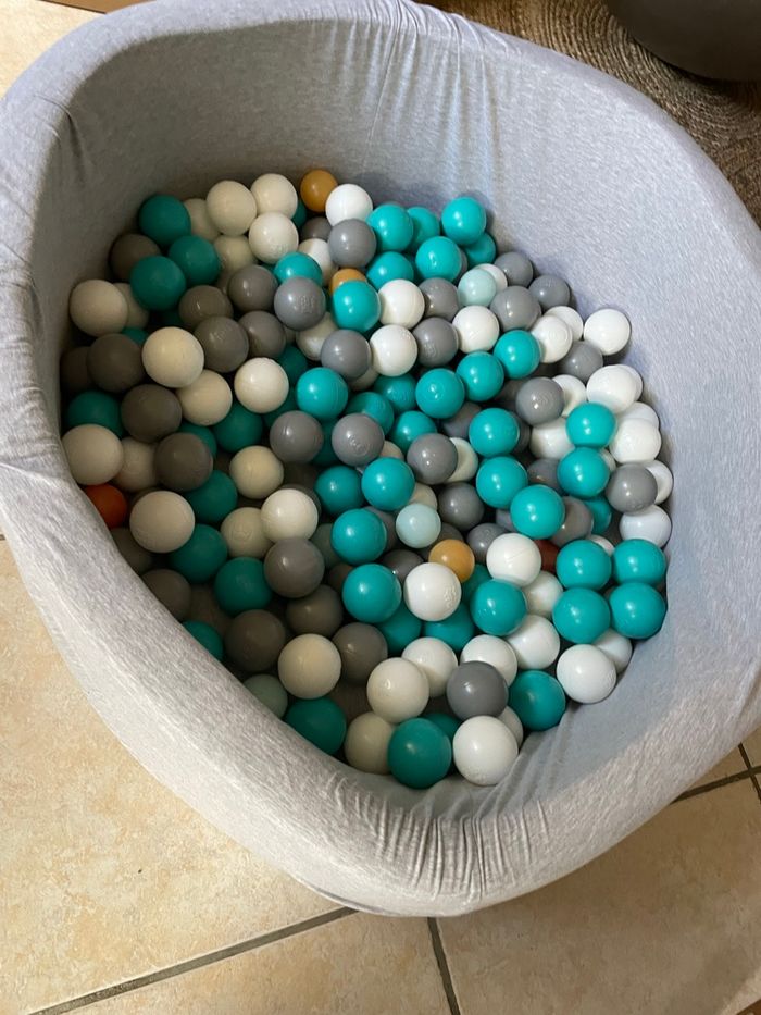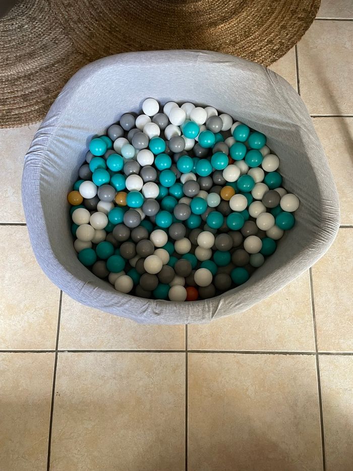 Piscine à balles 90 diverses balles Entièrement déhoussable La housse a été lavée puis rangée en carton dans des plastiques (2 mousses + 1 housse)