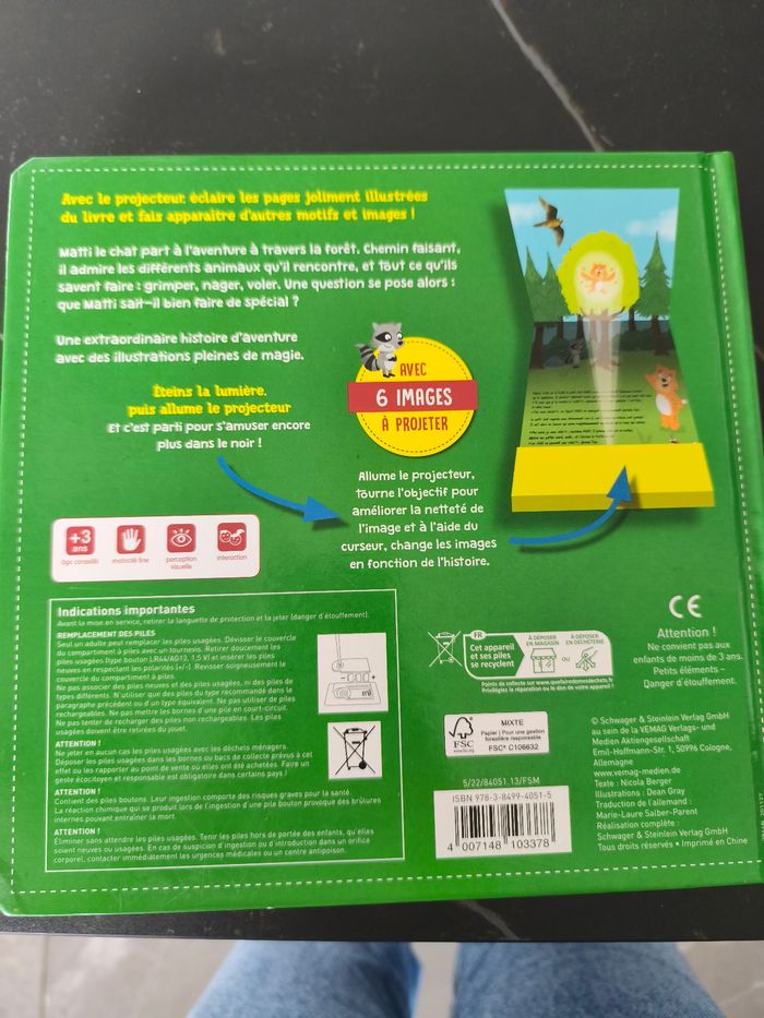 Avec le projecteur éclaire les pages joliment illustré du livre et fais apparaître d'autre motifs et images.
