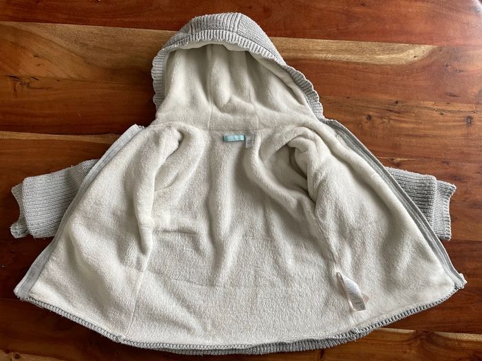 Petit gilet esprit Duffle coat avec intérieur en polaire couleur gris bleu Très bon état #giletenfant18mois #gilet18mois #giletchaudbebe #obaïbi #obaibi18mois #obaibi