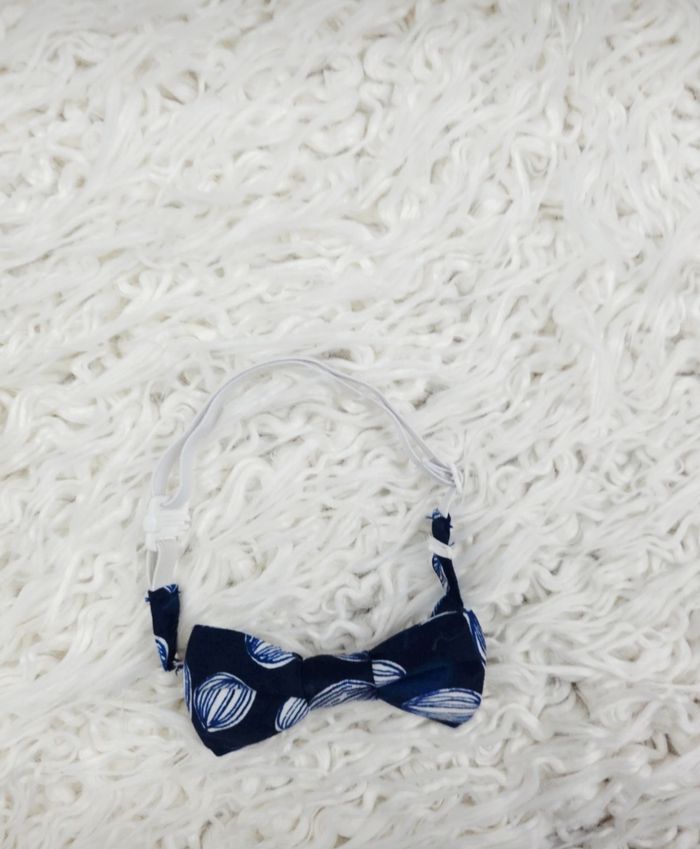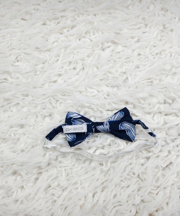 Noeud de papillon bleu marine à motifs Garçon marque Okaidi ✴️ Composition => 100 % coton ✴️ Sangle ajustable et élastiquée ✴️ Fermoir sécurisé à clipser