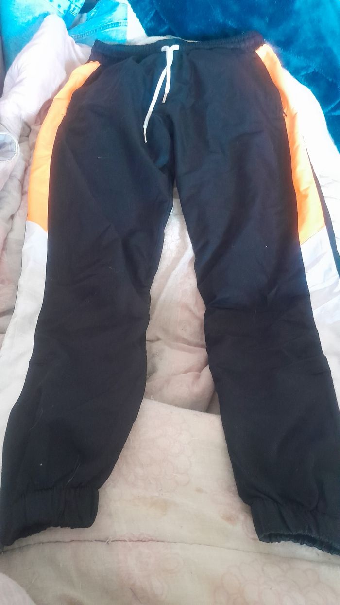 Lot de 3 pantalons de jogging. 1 gris adidas état moyen. 1 noir rayure blanc et orange, tissus à doublure, très bon état 1 noir très bon état (mais possible qu'il reste quelques poils de chat) Les 3 taillent plus ou moins pareil, mesures approximatives en photo