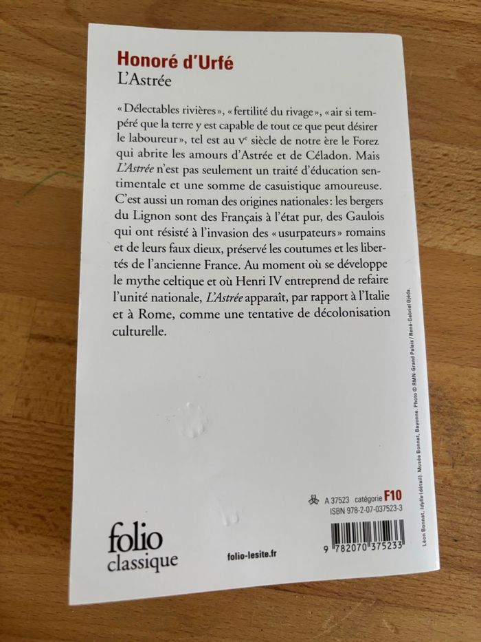Le livre est quasi neuf. Il a 2 marques sur la 4e de couverture. Voir photo " Délectables rivières ", " fertilité du rivage ", " air si tempéré que la terre y est capable de tout ce peut désirer le laboureur ", tel est au Vè siècle de notre ère le Forez qui abrite les amours d'Astrée et de Céladon. Mais l'Astrée n'est pas seulement un traité d'éducation sentimentale et une somme de casuistique amoureuse. C'est aussi un roman des origines nationales : les bergers du Lignon sont des Français à l'état pur, des Gaulois qui ont résisté à l'invasion des " usurpateurs " romains et de leurs faux dieux, préservé les coutumes et les libertés de l'ancienne France. Au moment où se développe le mythe celtique et où Henri IV entreprend de refaire l'unité nationale, l'Astrée apparaît, par rapport à l'Italie et à Rome, comme une tentative de décolonisation culturelle.