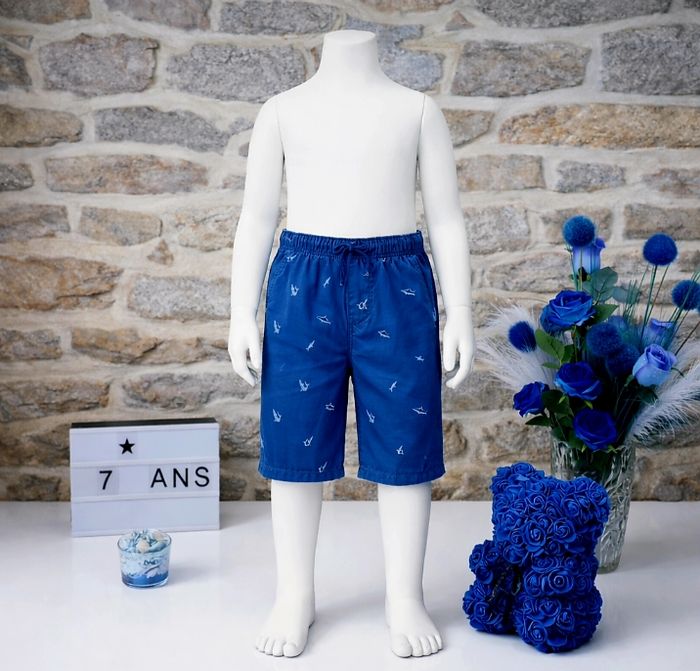 Bermuda motif requins bleu Garçon taille 7 ans marque Okaidi 🎸 - photo numéro 1