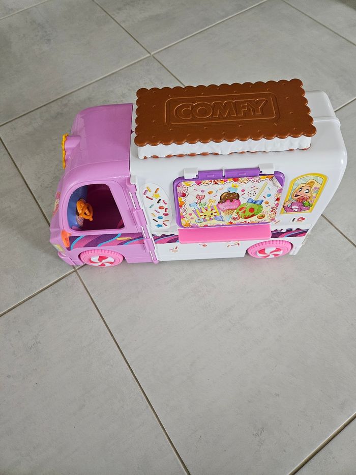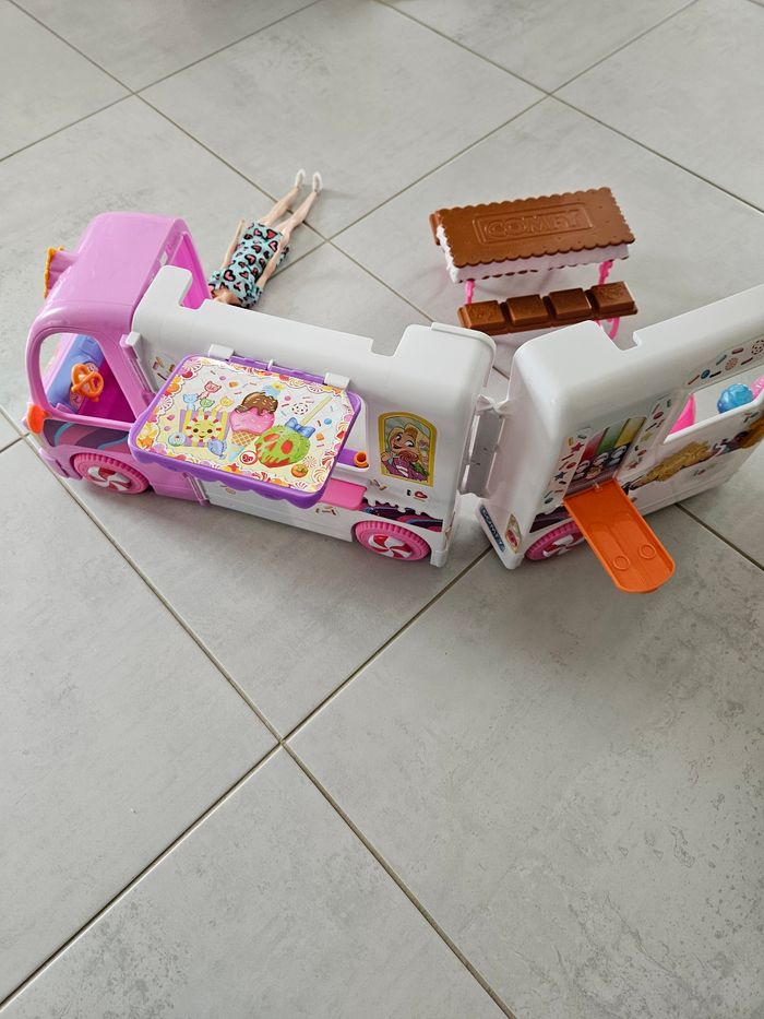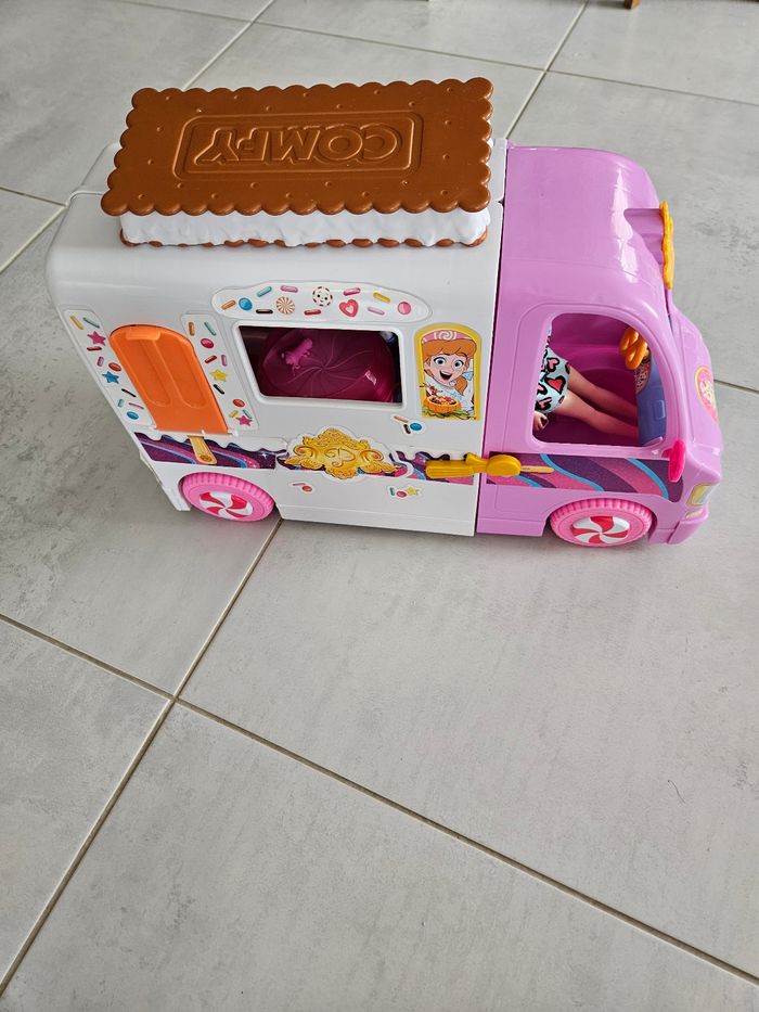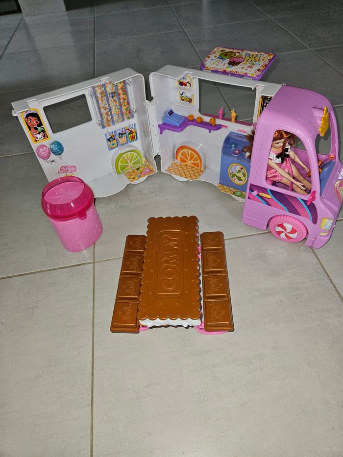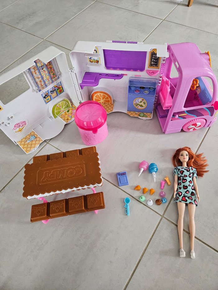 Camion glace avec accessoires, Comfy + 1 poupée barbie, très bon état