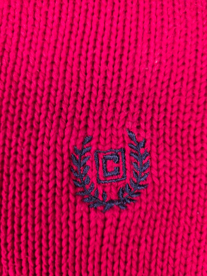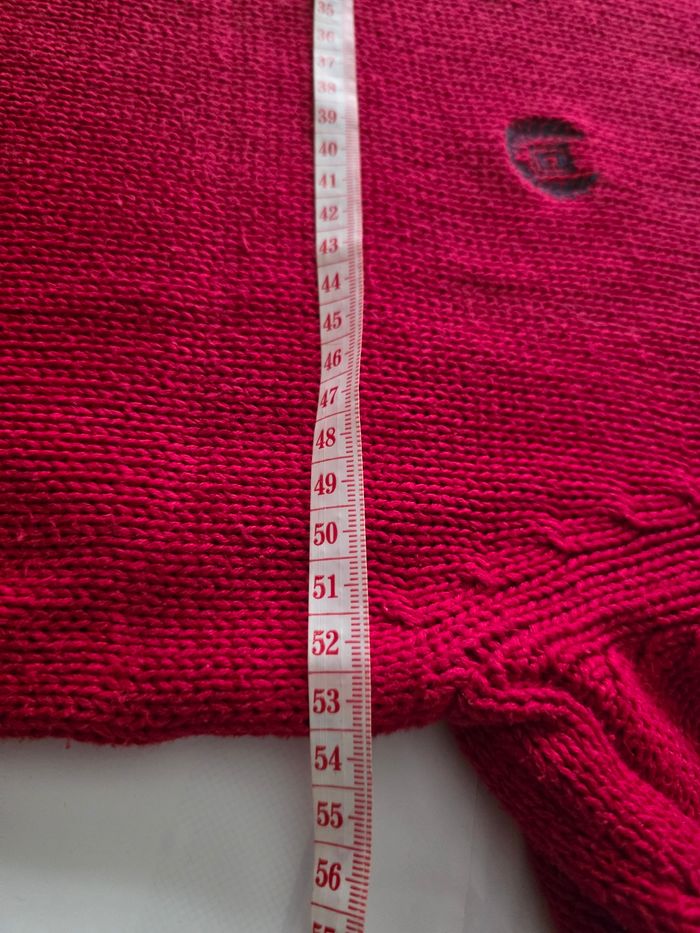 Vends pull Chaps original, coloris rouge vif avec logo brodé sur la poitrine. Matière: 100% Coton, maille souple et confortable. Dimensions : Laraeur (aisselle à aisselle) : 60 cm. Longueur (épaule au bas): 68 cm. Un classique indémodable, idéal pour dynamiser une tenue. Envoi rapide et soigné