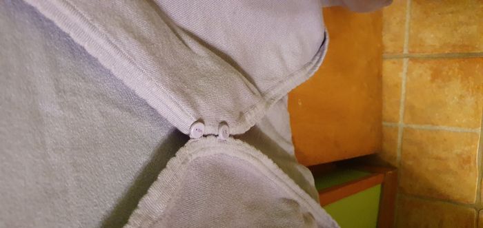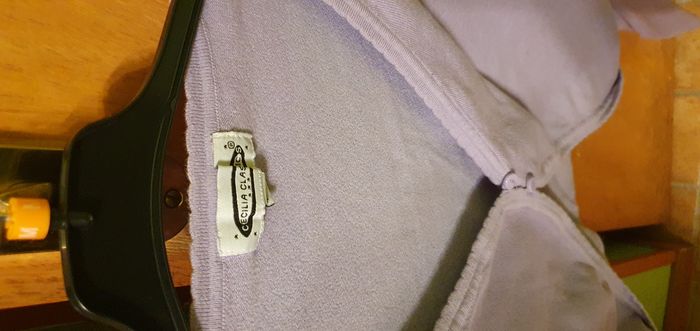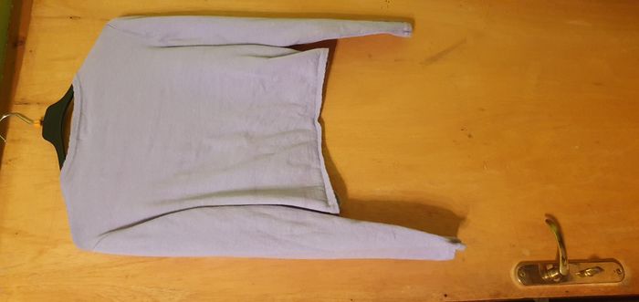 Gilet court forme boléro, coloris parme/lilas, marque Cécilia Classic, taille 46/48, 80% coton, 18% polyamide, 2% élasthanne à manches longues 59cms, fermeture par brides/2 boutons assortis (+1 de rechange à l'intérieur), encolure en V, largeur d'aisselle à aisselle 50cms, longueur 45cms.