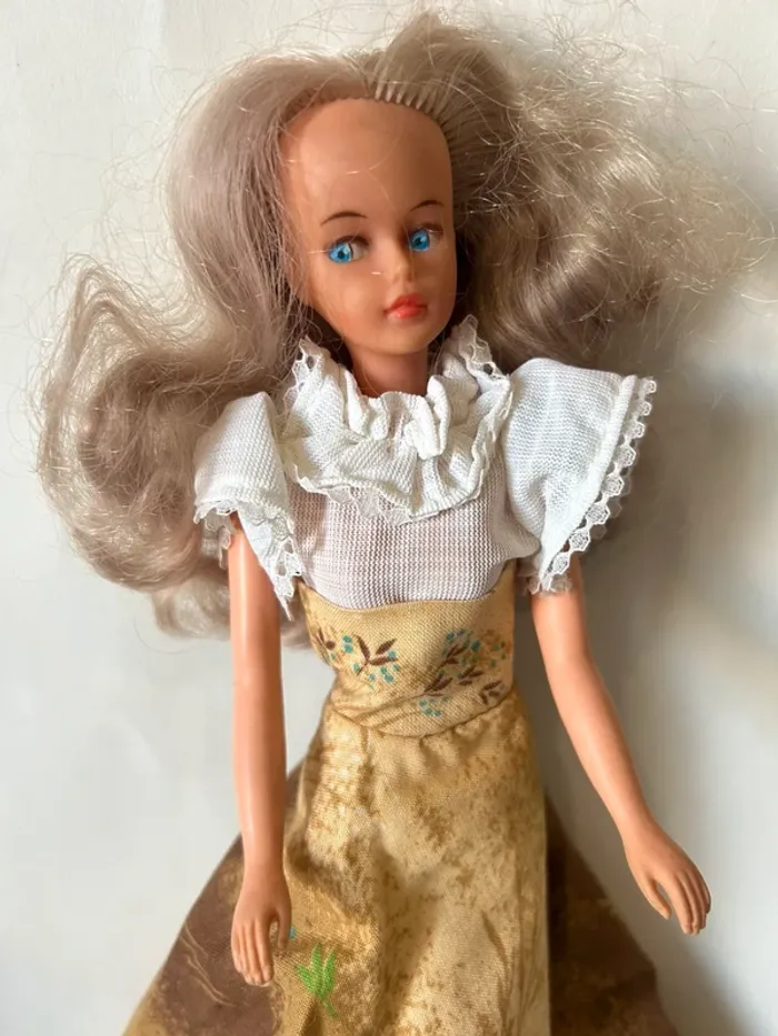 Poupée mannequin Bella vintage – Années 70 – Robe d’époque
