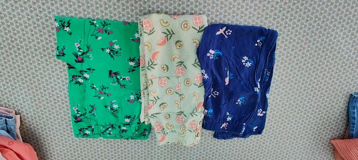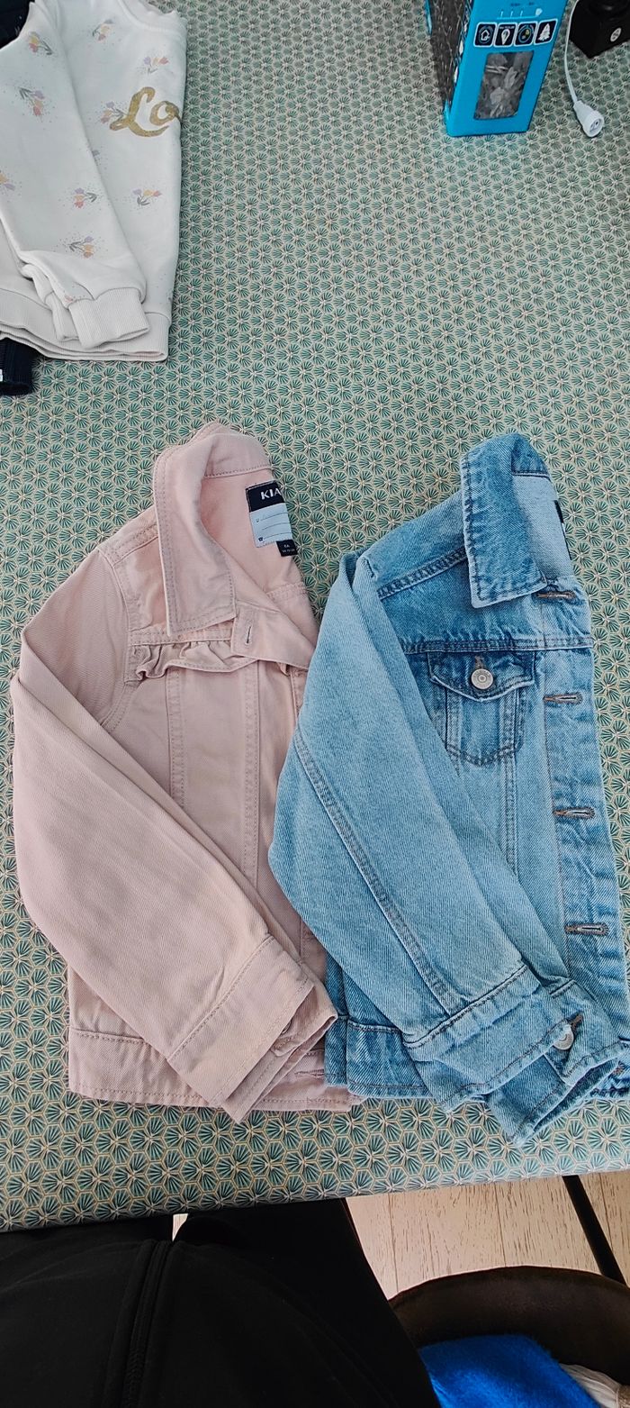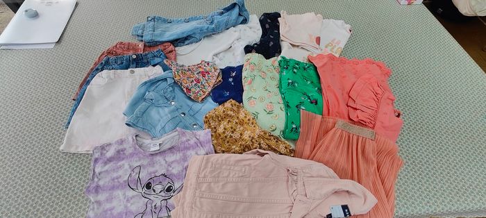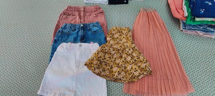 Lot de 20 vêtements 8 ans avec des vêtements en bon état (BE) et très bon état (TBE) pour la mi-saison et été avec : - 1 jupe en jean vieux rose - BE - Tape à l'oeil -1 jupe en jean denim - TBE - kiabi -1 jupe en jean blanche et rose - TBE - kiabi -1 jupe fluide à fleur, jaune - TBE - Tape à l'oeil - 1 jupe mi longue en tulle corail - BE- Kiabi - 1 T-shirt violet et blanc STITCH - TBE - kiabi - 1 T-shirt rose avec fraise strass réversibles - TBE- Tape à l'oeil - 1 T-shirt blanc rosé - TBE- Tape à l'oeil -1 T-shirt blanc avec épaules ajourées - BE - Gemo - 1 top à bretelles réglables, couleur estivale, élastique en très bon état- TBE - Kiabi - 1 robe en jean léger, boutons à pression - TBE - kiabi - 1 robe dos nu couleur corail avec broderie - TBE - kiabi - 1 pantalon fluide vert - TBE - kiabi - 1 pantalon bleu marine - BE - Gemo - 1 pantalon fluide vert clair - TBE - kiabi - 1 sweat à capuche, fermeture zippée, blanc avec quelques petites tâches discrètes - BE - Okaïdi - 1 sweat bleu marine à capuche, fermeture zippée - TBE - kiabi - 1 pull crème - neuf sans étiquette - kiabi - 1 veste en jean denim - TBE- kiabi - 1 veste en jean rose claire, avec petites tâches de décoloration grise sur les froufrous- BE - kiabi Je peux vous envoyer d'autres photos ou vous donner plus de renseignements si vous le souhaitez. N'hésitez pas