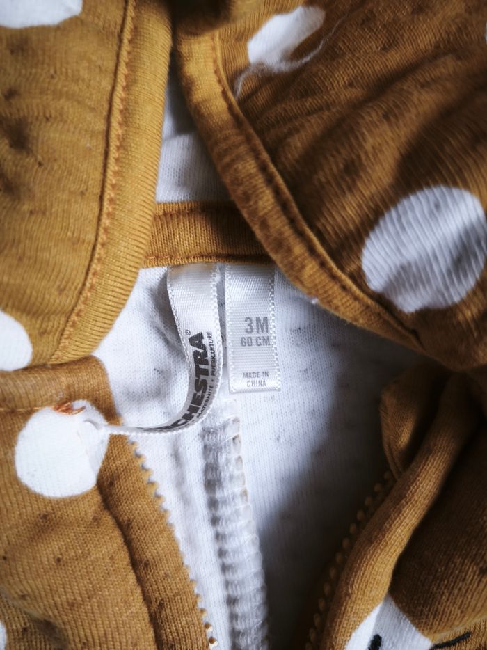 Combinaison de marque Orchestra taille 3 mois de couleur moutarde