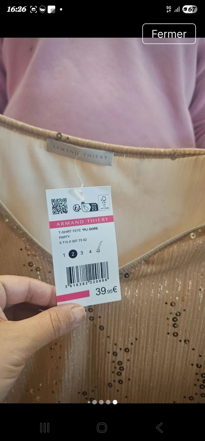 Blouse Armand thierry neuve avec ettiquette Valeur 40 € Taille 2 Je pense ca correspend a 40