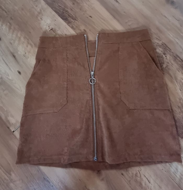 Jupe courte taille M imitation velours camel. Bon état
